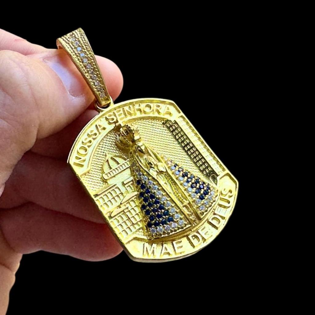 ✝️ PINGENTE NOSSA SENHORA MÃE DE DEUS IGREJA ✝️ 💎 Chaveou Joias 18K – A loja dos artistas! Exclusividade, estilo e qualidade garantidos! 📏 Especificações: ✔️ Modelo: Pingente Nossa Senhora Mãe De Deus Igreja ✔️ Tamanho: ✔️ - GRANDE 6CM x 4CM Compatível com correntes de até: 16mm ✔️ - MÉDIO 5CM X 3CM Compatível com correntes de até: 16mm ✔️ - PEQUENO 3CM X 2CM Compatível com correntes de até: 8mm ✔️ Acompanhamento: Caixa personalizada da Chaveou Joias 18K 🚀 Por que escolher a Chaveou Joias? 🔹 15 anos de tradição e experiência no ramo! 🔹 Produção própria, garantindo o melhor preço do mercado! 🔹 Qualidade imbatível em cada peça – 100% original e feita com moeda antiga. 🔹 Envio rápido e seguro para que sua joia chegue dentro do prazo. 🔹 Feito para durar, resistente à água e com alta durabilidade. 🛠 Cuidados com sua joia: 💦 Limpeza diária: Lave com detergente ou shampoo neutro, seque bem e guarde em local adequado. ✨ Limpeza profunda: Utilize nosso produto especial de limpeza disponível na loja. ⚡ SEU MOMENTO DE BRILHAR CHEGOU! ⚡