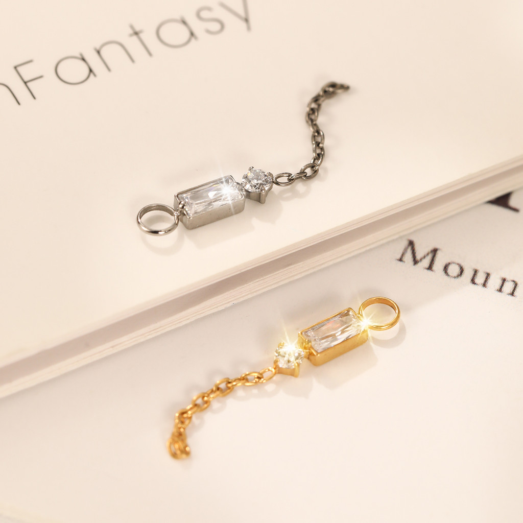 Pingente Para Piercing Titânio Pvd 2 Pedras Zircônia | Body Jewelry | Piercing Corporal | Moda | Acessório Fashion