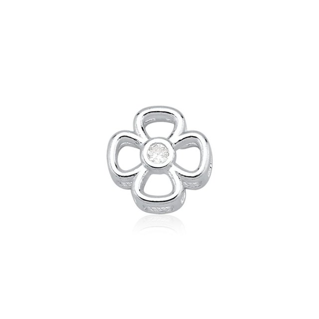 Pingente Passante de Prata 925 Trevo da Sorte Vazado e Ponto de Luz