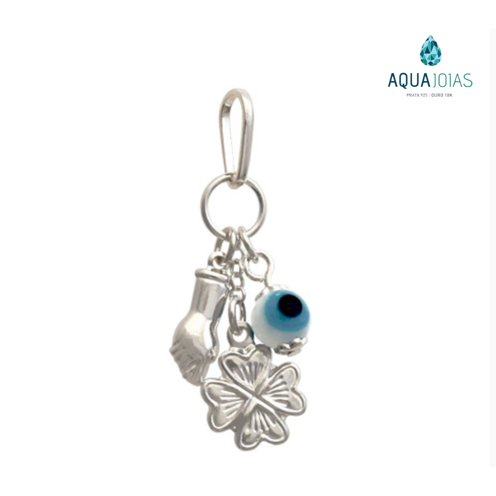 Pingente Patuá Prata 925 Olho Grego Trevo e Figa