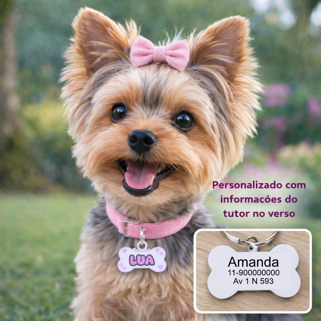 Pingente Pet Personalizado com Nome | Plaquinha Cachorro/Gato | Identificação Amor Pet ossinho pingemte coleira