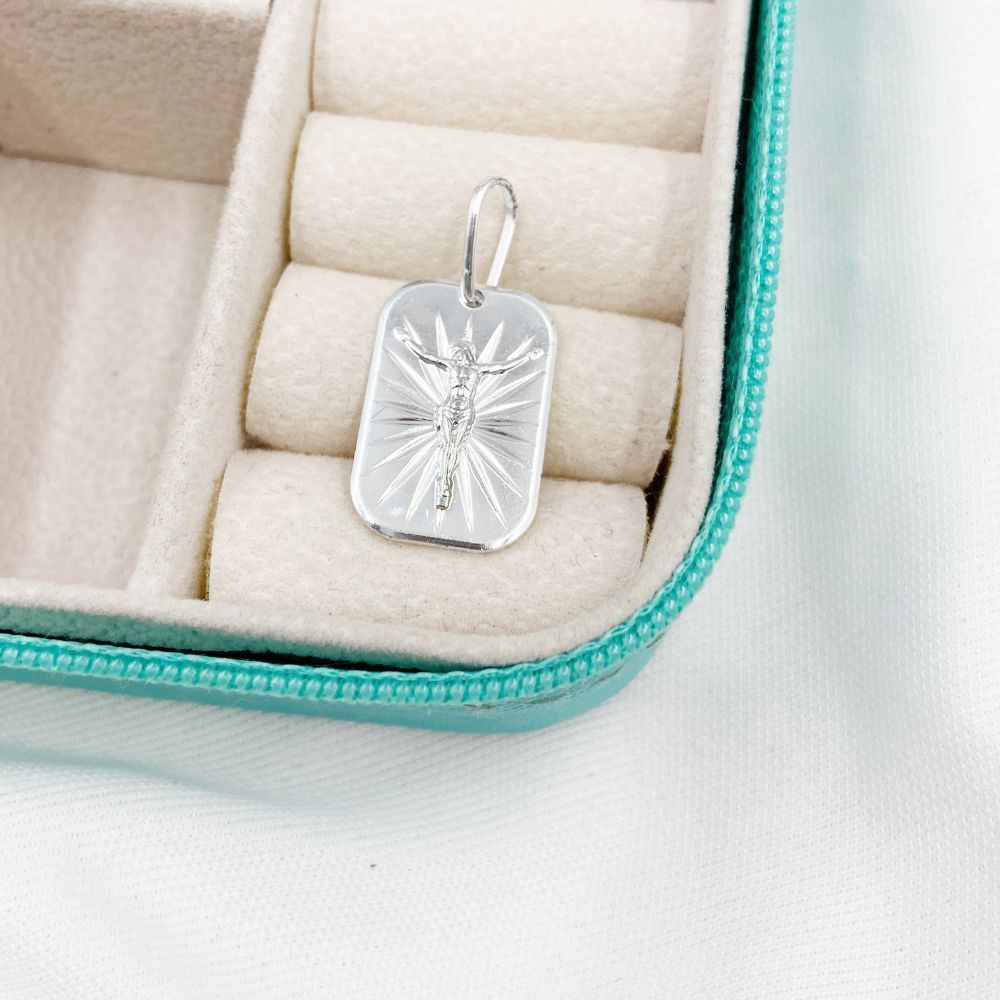 Pingente Placa Jesus Cristo Prata 925