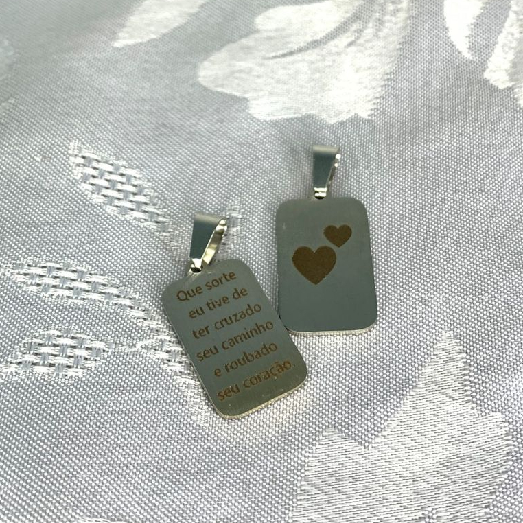 Pingente Placa Pequeno de Aço Inox Prata Personalizado com Gravação a Laser