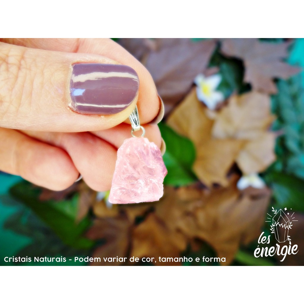 Pingente Quartzo Rosa – Pedra Natural Bruta – Autoestima e Amor Próprio (Venda unitária) A opção Qualidade Extra apresenta coloração rosa intensa e mais uniforme. A opção Tradicional possui tons de rosa mais suaves, mas ambas são Quartzo Rosa de qualidades diferentes, mantendo a mesma energia. ⚠ Fotos meramente ilustrativas ⚠ – as imagens não são atualizadas a cada renovação de estoque. Pedras 100% naturais, podendo apresentar variações de cor, tamanho e forma. Todas as peças possuem características típicas de pedras naturais, como fissuras e imperfeições. Deseja escolher seu cristal? Entre em contato pelo chat. Sobre o cristal: O Quartzo Rosa é a representação do amor em sua forma cristalina. Atua no quarto chakra, o cardíaco, sendo um dos cristais mais importantes para energizar esse centro. Emite uma vibração suave, mas poderosa, capaz de dissolver tristezas e mágoas profundas, liberando emoções negativas e despertando compaixão, ternura e compreensão. Favorece a ligação entre mente e coração, promovendo equilíbrio entre razão e emoção, sem medos ou cobranças. Abre caminhos para o amor incondicional, despertando uma visão mais amorosa sobre o mundo e sobre si mesmo, incentivando autoestima, reconhecimento pessoal e amor próprio. Limpeza energética: Recomenda-se a limpeza com selenita branca ou outros métodos que não utilizem água e sal, para evitar danos à parte metálica do pingente. Dimensões aproximadas: Tamanho: 1,5 a 3 cm Observações importantes: Todos os cristais são escolhidos individualmente, seguindo critérios de qualidade. Pedras 100% naturais, com variações naturais de cor, tamanho e forma. As fotos são ilustrativas; o pingente enviado pode não ser exatamente o mesmo exibido nas imagens. Quer escolher o seu cristal ou esclarecer alguma dúvida? Envie uma mensagem para nós pelo chat. Teremos prazer em ajudar e, se desejar, enviaremos fotos das peças disponíveis. Les Énergie – Conecte-se com as energias.