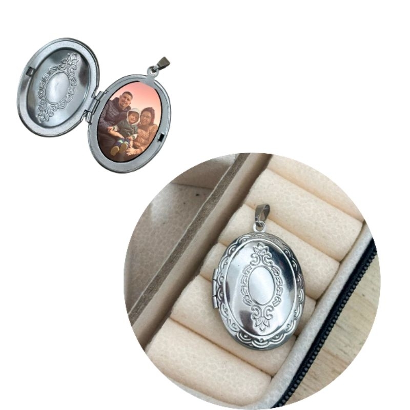 Pingente Relicário Medalhão em Aço Inox Personalizado com 2 Fotos