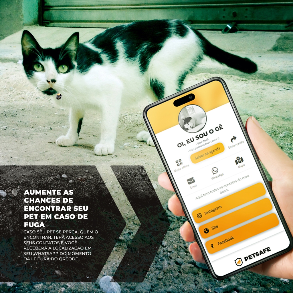 Mantenha seu pet sempre protegido e fácil de localizar com a Tag PetSafe da Gshield! Com um design moderno e QR Code exclusivo, a tag permite criar um perfil online completo com todas as informações do seu pet e seus contatos, garantindo segurança e identificação rápida em caso de fuga ou perda. A Tag PetSafe é a melhor escolha para tutores que priorizam a segurança e bem-estar de seus pets. Ela permite cadastrar dados essenciais, como nome, foto, condições médicas do pet e informações de contato do tutor (WhatsApp, e-mail e redes sociais), tudo acessível com um simples escaneamento do QR Code – sem necessidade de aplicativos! Quem encontrar seu pet pode acessar o perfil de forma prática e rápida, com sistema 100% gratuito, sem mensalidades e com notificações automáticas que facilitam o reencontro. Leve e confortável, a Tag PetSafe é ideal para cães e gatos de todos os tamanhos e raças, adaptando-se ao estilo de vida do seu pet – seja ele um aventureiro curioso ou um companheiro tranquilo. Feita em aço inoxidável resistente, ela aguenta o desgaste do dia a dia e as aventuras ao ar livre, sendo à prova d'água e poeira, para acompanhar seu amigo em qualquer lugar. Com a tecnologia de QR Code, você pode atualizar as informações do perfil sempre que necessário, garantindo que os dados do seu pet estejam sempre atualizados. Invista na segurança do seu bichinho com a Tag PetSafe da Gshield e tenha a tranquilidade de saber que, onde quer que ele esteja, ele pode sempre encontrar o caminho de volta para casa! ESPECIFICAÇÕES Marca: Gshield Material: Aço inoxidável Tamanho: 3x3 cm Tecnologia: QR Code exclusivo e personalizável Obs.: Coleira não inclusa.