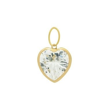 Pingente zircônia de coração 6mm Cristal ouro 18k