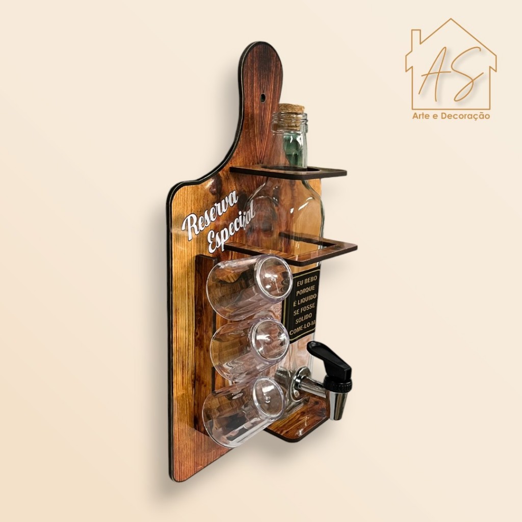 Pingômetro de Parede MDF com 3 Copos Acrílico – Para sua Bebida com Estilo e Praticidade 🍻✨ Deixe sua área gourmet ou bar ainda mais elegante e funcional com o nosso Pingômetro de Parede! 🍸 Além de ser super útil para armazenar sua bebida favorita, ele também é uma peça incrível de decoração. Perfeito para quem adora receber amigos e aproveitar bons momentos! 🥂 Ideal para: 🔹 Adegas 🍷 🔹 Áreas gourmet 🍴 🔹 Cozinhas 👩🍳 🔹 Churrasqueiras 🍖 🔹 Ranchos e varandas 🌳 🔹 Home bar 🍸 🔹 Pubs e bares em geral 🍺 Características: 🔹 Base em MDF de 3mm com adesivo de alta qualidade e corte a laser, garantindo beleza e resistência. 💎 🔹 Garrafa de vidro com torneira anti-vazamento (A cor da garrafa pode variar entre verde e transparente, de acordo com o estoque – fique à vontade para escolher a que mais combina com o seu espaço). Imagens ilustrativas. 📸 Dimensões: 📏 Altura: 35 cm 📏 Largura: 20 cm 📏 Profundidade: 8,9 cm Capacidade: 🔹 Aproximadamente 700ml – ideal para servir sua bebida com praticidade! 🍹 Composição: 🔸 MDF, Plástico, Vidro, Cortiça e Adesivos – materiais que garantem resistência e beleza para o seu ambiente! 🎉 Boas compras!! 🛒🍻