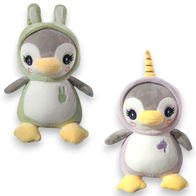 Pinguim c/ Fantasia Unicórnio Coelho Pelúcia Macio Antialérgico Gruas Presentes Brinquedo Infantil