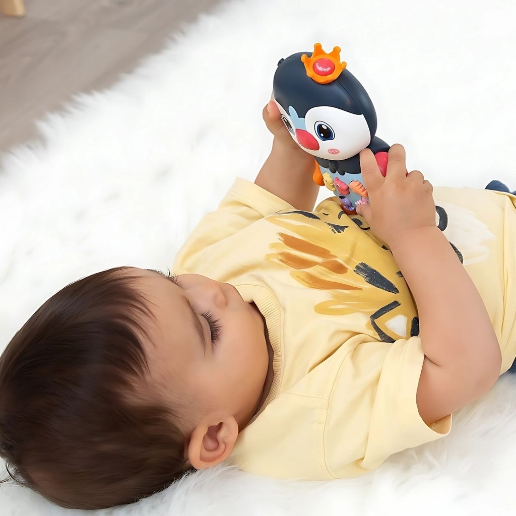 Pinguim Interativo Brinquedo Infantil Sons e Luz Divertido Azul Castela