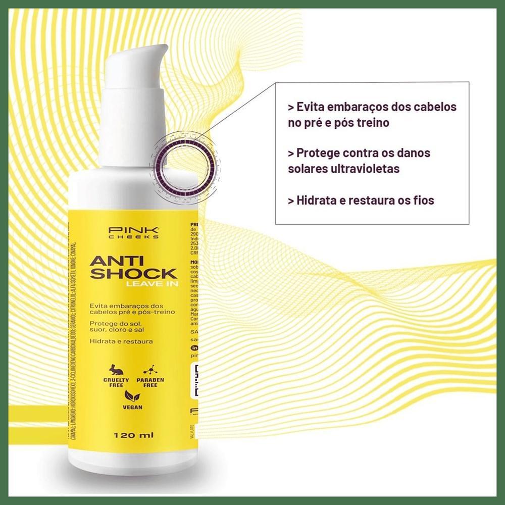 Leave-in para cabelo exposto ao sol e cloro. Com filtro solar, repõe a hidratação e recupera o brilho. Pink Cheeks Anti Shock evita que os fios embaracem, especialmente durante a prática esportiva, quando estão mais suscetíveis à ação do vento e demais agentes naturais. Pink Cheeks Anti Shock é indicado para praticantes de esportes ao ar livre, no mar e na piscina por preservar a saúde dos fios. Antes do treino, sua fórmula protege dos raios ultravioleta, conserva a hidratação e evita que eles embaracem. Após as atividades, Pink Cheeks Anti Shock confere brilho, maciez e prolonga a cor do cabelo. Pink Cheeks Anti Shock facilita o pentear por reduzir o frizz com o fechamento das cutículas, além de proporcionar fios com a saúde em dia. É Perfeito para se usar após a lavagem com o Shampoo Anti Shock da marca. **** IMPORTANTE: Não vendemos para contas CNPJ, evite que seu pedido seja cancelado! ****