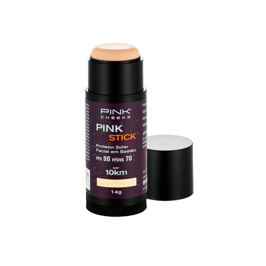 Protetor Solar com cor FPS90 FPUVA70 Pink Stick 14g É um protetor solar facial, em formato bastão, prático e multifuncional que alia alta proteção, tratamento, beleza e praticidade. Ideal para ser usado como um protetor solar diário e, especialmente, durante a prática de exercícios físicos ao ar livre, já que é resistente à água e ao suor. Não escorre e não arde os olhos. Devido ao seu alto fator de proteção, seu uso contínuo auxilia na prevenção e redução dos sinais de envelhecimento, e no tratamento de manchas na pele, como o melasma. Seu pigmento atua formando mais uma barreira de proteção na pele, contra a luz visível. Possui textura e sensorial agradáveis, pigmentação leve, ideal para uniformizar sua pele. Fórmula enriquecida com vitamina E, potentes antioxidantes associados que combatem os radicais livres e o envelhecimento cutâneo, reduzindo rugas e linhas de expressão. Disponível em 8 tonalidades que se adaptam a diversas tonalidades de pele. As tonalidades são definidas como "quilometragens" - 5km, 10km, 15km, 21km, 42km 42km Rio, 60km Ultra, 80km Ultra e 100km Ultra. Apenas como forma de diferenciar as cores. Estas "distâncias" não significam o tanto de quilometragem que a pessoa precisa fazer para usar. O Pink Stick é composto por filtros químicos nobres e filtros físicos que se complementam para oferecer altíssima proteção contra os raios UVA e UVB do sol. Apenas com o protetor físico, não é possível obter a altíssima proteção FPS90 e FPUVA70. Dados TécnicosIndicado para todos os tipos de pele Alta Proteção - FPS90 FPUVA70 Formato em bastão que facilita a aplicação Textura e Cobertura leve e confortável Rico em Vitamina E hidrata e uniformiza a pele Não escorre com o suor e não arde os olhos Produto resistente à água por 4 horas Dermatologicamente testado Produto Vegano e Livre de Parabenos Não testado em animais O Pink Stick foi submetido a testes de eficácia e segurança, realizados em laboratório credenciado - Kosmocience Ciência e Tecnologia Cosmética LTDA, onde ficaram comprovados os pontos abaixo: Proteção contra os raios UVB, através do ensaio de Fator de Proteção Solar ou FPS; Proteção contra os raios UVA, através do ensaio de Fator de Proteção UVA, PPD ou FPUVA; Resistência de 100% a água até 4 horas de imersão; Segurança do produto, através de teste de compatibilidade cutânea. Modo de Usar Aplique o protetor solar de maneira abundante por toda extensão do rosto, incluindo a região dos olhos. Após a aplicação, espalhe o produto com as mãos, esponja ou pincel para deixar com acabamento uniforme. É necessária a reaplicação do produto após a transpiração excessiva ou permanência prolongada na água, para manter a sua efetividade. Se a quantidade aplicada não for adequada, o nível de proteção será significativamente reduzido. Ajuda a prevenir as queimaduras solares. Recomendações Guarde sempre bem fechado, longe da luz e calor excessivo. Não deixe seu stick no carro. Leve com você! Recomendamos remover o protetor solar adequadamente, com demaquilante e/ou água e sabonete, preferencialmente com ácido salicílico (Face Bubbles). Em caso de irritação, suspender o uso e procurar orientação médica. Não deve ser ingerido. Mantenha fora do alcance de crianças. Conservar em local seco, em temperatura ambiente. USO EXTERNO. Composição C30-45 Alkyl Methicone / C30-45, Olefin; Dicaprylyl Carbonate; Isononyl; Isononanoate; Titanium Dioxide/Hydrogenated; Polysobutene/Trimethxycaprylylsilane/Hydrogenated; Castor Oil Hydroxystearate/Ppg-5-ceteth-10 Phosphate;C12-15 Alkyl; Benzoate; Butylene; Glycol Cocoate; Ci 77891/ Triethoxycaprylylsilane; Methyl; Methacrylate Crosspolymer; Bis-ethylhexyloxyphenol Methoxyphenyl; Triazine; Diethylamino Hydroxybenzoyl Hexyl; Benzoate; Ethylhexyl Triazone; Hydrogenated; Olive Oil Unsaponifiables; Ci 77492 / Triethoxycaprylylsilane;Parfum; Ci 77491/ Triethoxycapryllylsilane;Ci 77499 / Triethoxycaprylylsilane; Pentaerythrityl; Tetra-di-t-butyl Hydroxyhydrocinnamate; Tocopheryl Acetate. Produto Vegano, livre de componentes de origem animal. Livre de Parabenos. Cruelty Free. A PINK CHEEKS não realiza testes de seus produtos em animais. Nossos testes são realizados em pessoas voluntárias, através de laboratórios credenciados. A ANVISA considera hipoalergênico os produtos que passaram por testes de sensibilização realizados em humanos em laboratórios especializados. Hipoalergênicos são produtos com menos chance de causar alergia. No entanto, não há garantias de que o produto não causará alergia em 100% das pessoas, já que cada pessoa tem uma reação diferente. A PINK CHEEKS não classifica este produto como hipoalergênico, uma vez que o produto não passou por testes. Você pode ter acesso à composição de todos os produtos da PINK CHEEKS através da página de cada produto em nosso site. ANVISA: Registro Nº 251160018