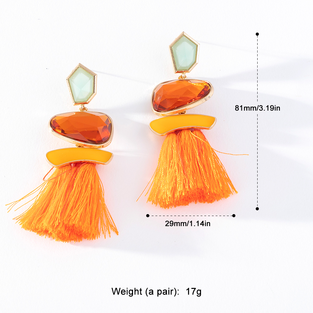 Pinkdudu Brincos Multicolor Em Forma De Leque Tassel Drop Alloy Gem Moda Exagerada Temperamento Étnico Geométrico Série Criativa Para Jóias Femininas PD1441