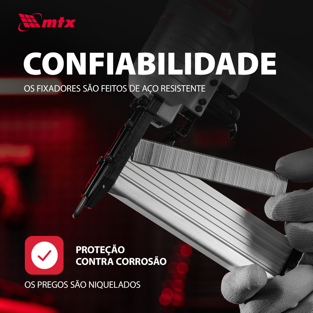 Os Pinos para Pinador MTX 18GA 576169 constituem uma solução excepcional para profissionais e entusiastas do faça-você-mesmo (DIY) que buscam eficiência e precisão em seus projetos de fixação. Projetados para serem compatíveis com pinadores pneumáticos de qualquer marca que aceitem acessórios de 4,0 x 1,25 x 1 cm, esses pinos são ideais para conectar uma ampla gama de materiais, incluindo madeira, MDF, aglomerado e metal. A facilidade de uso destes pinos os torna acessíveis até mesmo para iniciantes, garantindo uma experiência de fixação sem esforço. Principais Vantagens: Durabilidade Superior: Fabricados em aço de alta qualidade, os Pinos para Pinador MTX 18GA 576169 são projetados para resistir a quebras, assegurando uma conexão confiável e duradoura entre os materiais. Esta robustez é essencial para garantir que suas construções e reparos se mantenham seguros e estáveis ao longo do tempo, proporcionando paz de espírito e reduzindo a necessidade de manutenções frequentes. Proteção Contra Corrosão: O revestimento de níquel sobre cada pino não só confere uma aparência esteticamente agradável, mas também oferece uma camada de proteção contra a corrosão. Esta característica é particularmente valiosa em ambientes úmidos ou para projetos externos, onde a exposição aos elementos pode comprometer a integridade da fixação ao longo do tempo. Embalagem Econômica: Disponibilizados em caixas de 5000 unidades, os Pinos para Pinador MTX 18GA 576169 permitem a realização de um grande volume de trabalho sem a necessidade de reabastecimento frequente. Esta embalagem conveniente e econômica é ideal para profissionais que lidam com grandes projetos ou para entusiastas do DIY que desejam ter um suprimento adequado à mão para vários projetos futuros. Os Pinos para Pinador MTX 18GA 576169 são a escolha perfeita para quem busca uma fixação de alta qualidade, durável e esteticamente agradável. Seja para trabalhos de carpintaria delicados, montagem de móveis ou fixação de detalhes decorativos, esses pinos garantem uma aplicação eficaz e resultados profissionais. A combinação de durabilidade, proteção contra corrosão e economia de embalagem faz destes pinos uma adição valiosa ao arsenal de ferramentas de qualquer profissional ou entusiasta do faça-você-mesmo, assegurando que cada projeto seja concluído com sucesso e sem complicações.