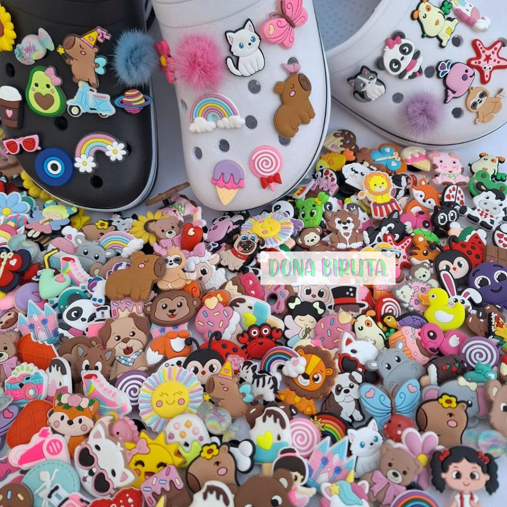Kit com 10 peças sortidas e sem repetições, enviadas de acordo com a disponibilidade do nosso estoque. A variação “Aleatória Com Personagens” é enviada com, no mínimo, 3 personagens de temas diversos. Pins fofos e divertidos para decorar seu calçado. Você pode usar um estilo, tema ou personagem diferente todos os dias, basta trocar e montar sua combinação preferida. * Produto à pronta entrega. Pronto para usar! * Não é possível escolher os itens. Os Pins são enviados aleatoriamente. Sem repetições. * Não é brinquedo. Não recomendado para crianças menores de 3 anos. Obs: Para retirar o Pin não puxe pelo aplique! Coloque sua mão por dentro do calçado e empurre o botão para fora. Assim o Pin sai de maneira fácil e sem danificar a peça ou o calçado. Material: PVC flexível / Silicone / Acrílico / Poliéster / Plástico Tamanho variado: entre 1 e 5,5 cm Peso por peça: entre 3 e 7 g Diâmetro do adaptador: 12 mm (ideal para furos de 7 e 8 mm) – verifique com o vendedor a disponibilidade de pins com adaptadores para furos menores. Quantidade: 10 itens aleatórios