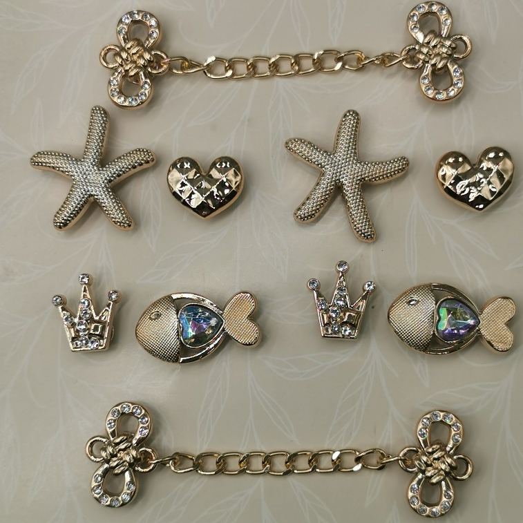 Pins \ Bottons para Babuche Dourada diversas decorações - Kit Com 10 para sandália Peixinho