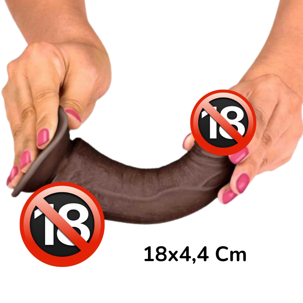ENVIO IMEDIATO/ EMBALAGEM DISCRETA Prótese maciça em formato de pênis com escroto e ventosa para penetração vaginal e anal. Cuidados: Lavar antes e após o manuseio com água e sabão neutro. Não compartilhe deste produto com outros parceiros. Material: PVC Atóxico Tamanhos: 18 cm de comprimento e 4 cm de diâmetro Material: Silicone. Recomendações: Use lubrificante a base de água; O uso do preservativo é recomendado e opcional; Para uso pessoal - não aconselhamos compartilhar o uso com outras pessoas. Higienização: Antes e após o uso faça sempre a higienização com água e sabão neutro ou com produto específico; Seque com papel toalha ou deixe secar naturalmente; Depois guarde-o na embalagem original - dessa forma ele estará protegido do calor e da luz excessiva.