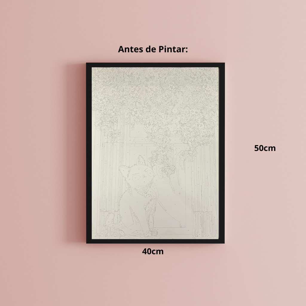 Pintura Numerada em Tela 40x50 Gatinha na Janela Sinoart C3040-w8155