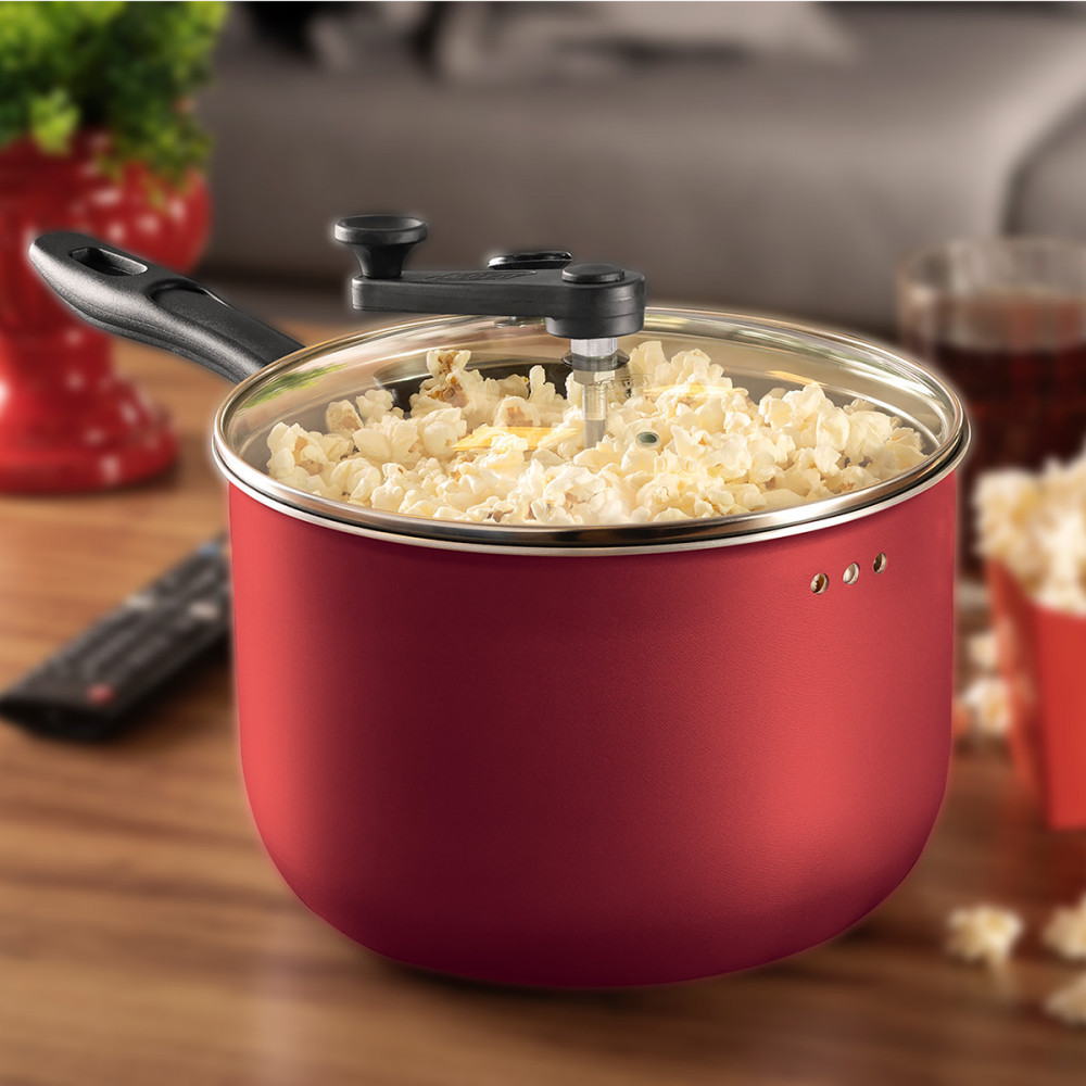 Pipoqueira Antiaderente Supra MTA 4,8L Com Tampa de Vidro Cereja - 3030 Perfeita para transformar seus momentos de lazer em experiências deliciosas e práticas. Com capacidade ideal para preparar grandes porções, ela proporciona pipocas fresquinhas e crocantes para toda a família. Seu revestimento antiaderente Superflon Ultra impede que o milho grude, facilitando a limpeza e prolongando a vida útil do produto. A tampa de vidro temperado permite acompanhar todo o processo de preparo, enquanto o manípulo com sistema giratório entrega uma pipoca uniforme e sem queimar. Seu design moderno, na vibrante cor cereja, alia funcionalidade e estilo na cozinha. Especificações Marca: MTA Modelo: 3030 Cor: Cereja Capacidade 4,8 Litros Antiaderente Sim Camadas antiaderentes 7 Camadas Tipo de fechamento Tampa Tipos de fogões compatíveis A gás, Elétrico e Vitrocerâmico Compatibilidade com lava louças Sim Tampa Vidro temperado com saída de vapor Material do cabo Baquelite e metal Tipo de manípulo Giratório Imagens de caráter ilustrativo. Informações divulgadas de acordo com o manual do fabricante. Em caso de dúvidas sobre informações técnicas, utilização, limitações e manuseio do produto, verifique o manual do fabricante. Produto novo na caixa, lacrado com NF e garantia do fabricante de 3 meses NAC013583 EAN: 7897186630304