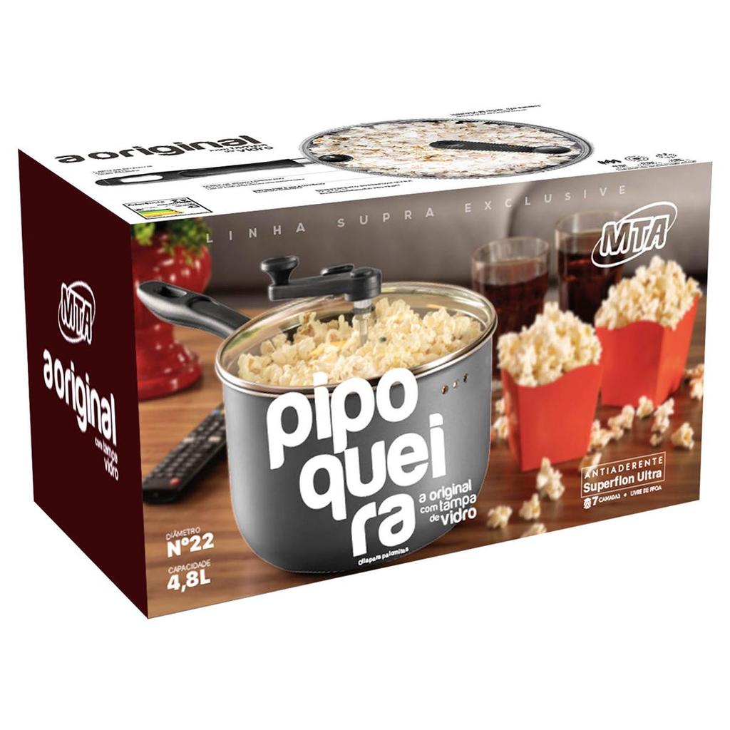 Pipoqueira Antiaderente Supra MTA 4,8L Com Tampa de Vidro Grafite - 1313
