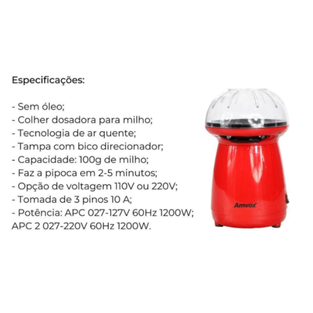 Pipoqueira Eletrica Amvox Tampa com Bico Direcionador 1200W APC 027