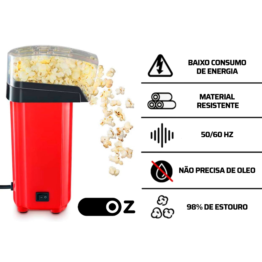Pipoqueira Elétrica Ar Quente Máquina Fazer Pipoca Sem Óleo 110v/220v