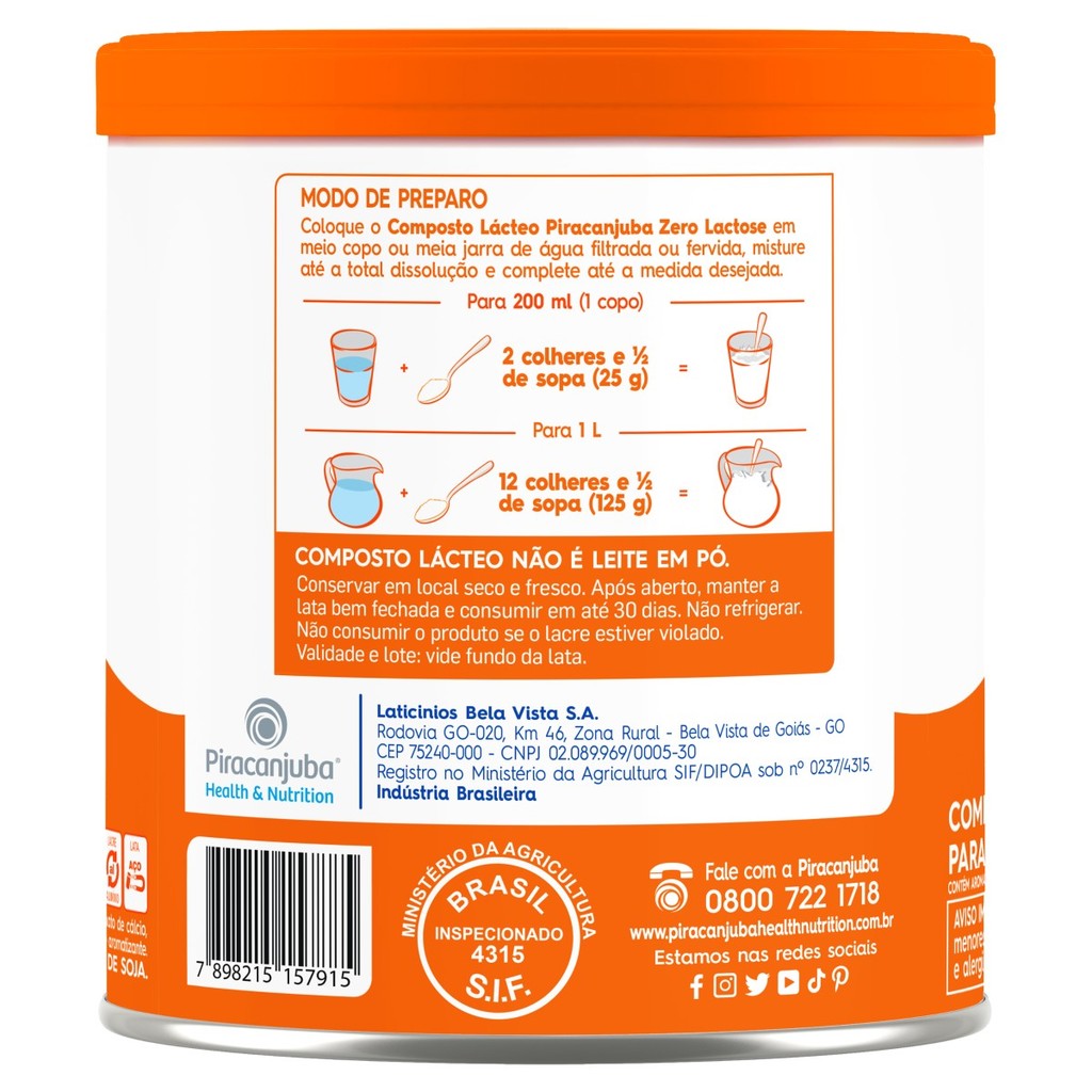 Piracanjuba Composto Lácteo Zero Lactose Lata 380g