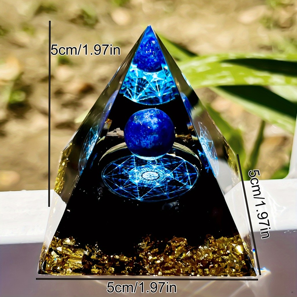 Pirâmide De Orgone Lápis-Lazúli E Obsidiana 5.0 Cm-Pedra Natural Para Energia Positiva , Relaxamento Chakra-Presente De