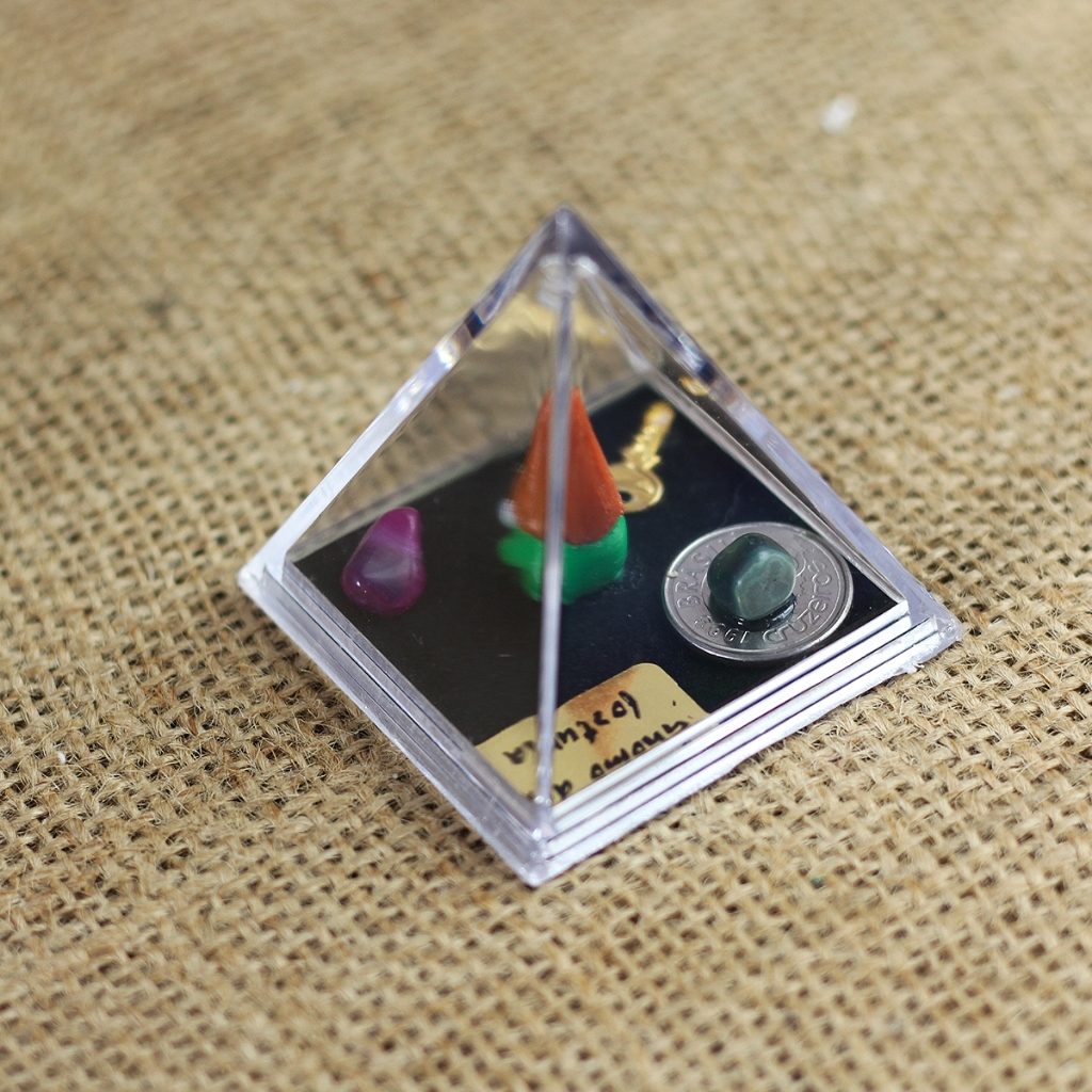Adicione um toque de significado e energia positiva ao seu ambiente com esta elegante pirâmide em acrílico. Em seu interior, encontra-se um gnomo da sorte e fortuna, símbolo tradicional de proteção, prosperidade e boas energias. A composição é enriquecida com elementos cuidadosamente selecionados: Moeda: representa abundância e prosperidade financeira Chavinha: simboliza abertura de caminhos e novas oportunidades Pedras semi preciosas: associadas ao equilíbrio energético e bem-estar A pirâmide, além de decorativa, é conhecida por seu formato que potencializa e harmoniza energias, tornando o produto ideal para ambientes como escritórios, salas, altares ou espaços de meditação. Características: Material: Acrílico resistente e transparente Design exclusivo e artesanal Elementos internos fixos e protegidos Ideal para decoração, presente ou uso espiritual Dimensões; 5cm x 5cm x 5,5cm Peso: 20g