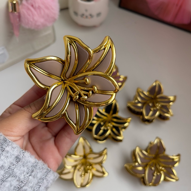 Piranha cabelo Flor Dourada Luxo – Acessório de Cabelo Elegante Feminino!
