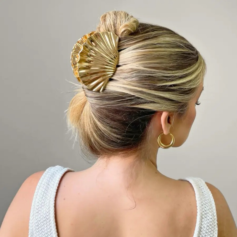 Piranha de Cabelo Concha Metal – Tendência Verão 2025 – Unidade – Grande ou Pequena – Dourada ou Prata