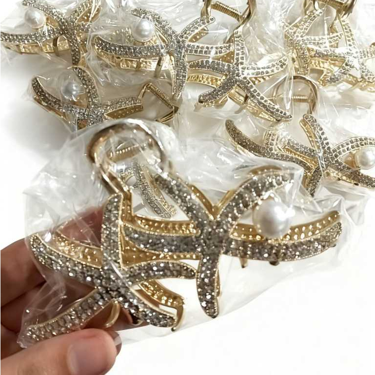 Piranha de Cabelo Estrela do Mar com Strass – Presilha Feminina Elegante e Brilhante