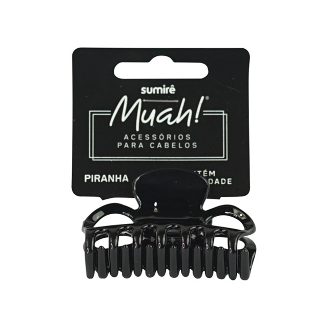 A Piranha Tradicional média Muah! Possui formato de borboleta, prático e fácil de usar. Ideal para prender os cabelos com praticidade, total conforto e sem danificar os fios. Imagem Meramente Ilustrativa - Modelos Variados Modo de uso: Aperte as asas do prendedor e insira um lado dos "dentes" em seu cabelo, previamente segurados com as mãos. Em seguida, passe-a sobre a mecha e fixe o outro lado dos dentes. Para remover, basta apertar as asas.