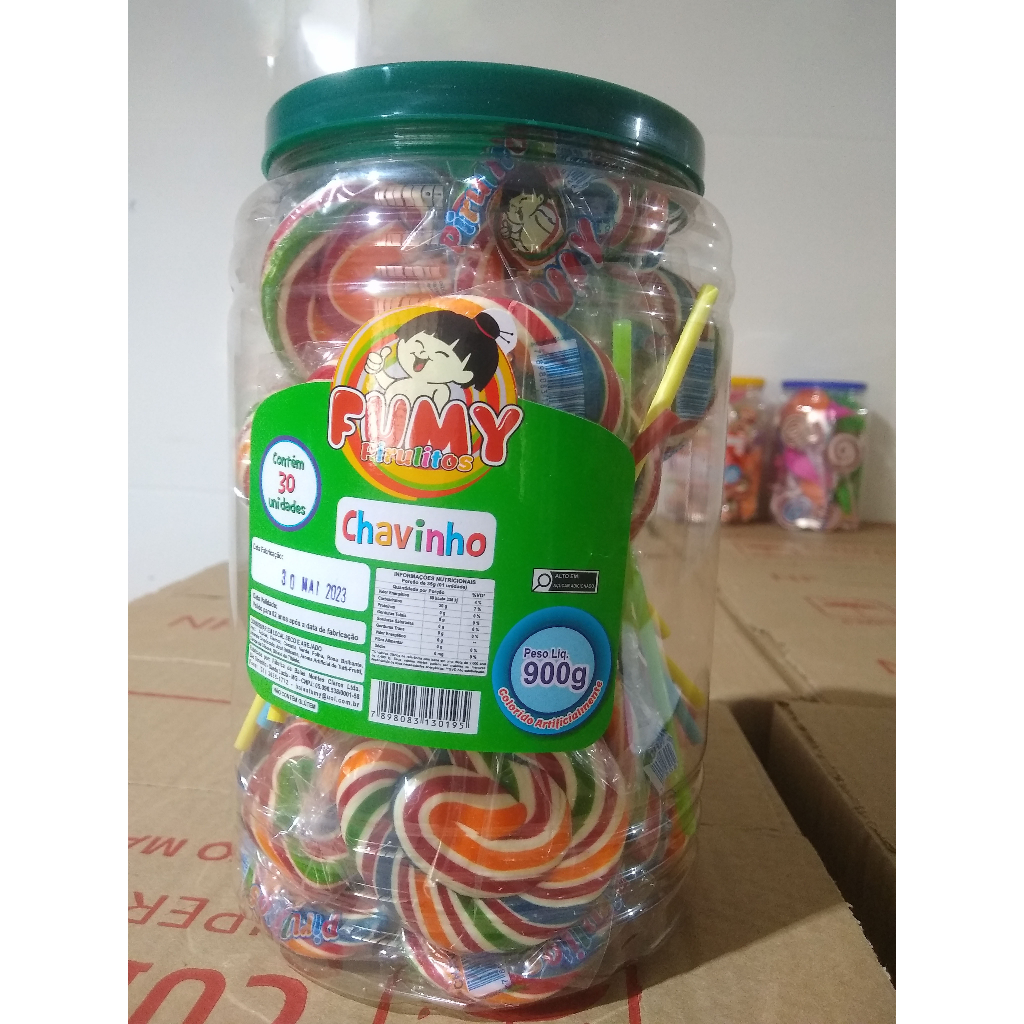 Deliciosos Pirulitos Fumy com embalagens individuais - 30 unidades no pote Chavinho ideal para festas, brindes, lanches e vendas Tamanho do pirulito diâmetro: 5,5cm* Tamanho com cabo: 16,5cm* Peso com pote: 900g Pirulito com cores sortidas Sabor: tutti-frutti Com reforço na embalagem para envio Pirulitos com validade de 2 anos *as medidas de diâmetro podem sofrer variação de até 1cm imagem ilustrativa