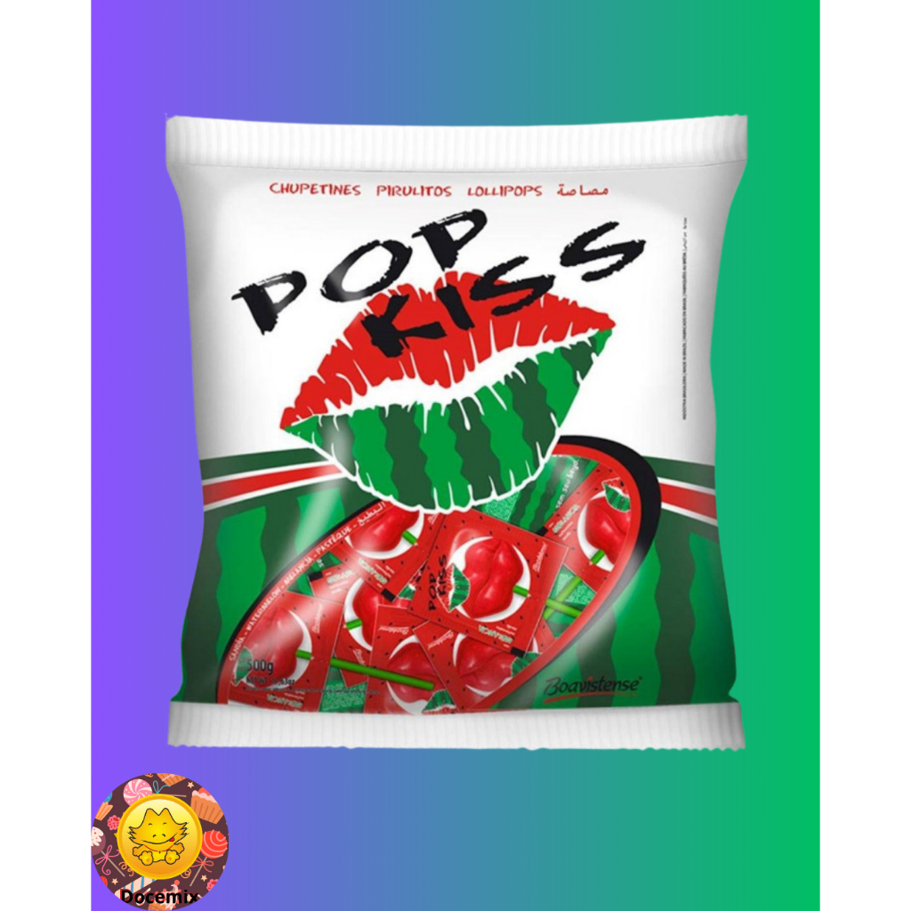 Pirulito Pop Kiss no formato de boca no sabor melancia. Ideal para decorações de festa, lembrancinhas, comércios ou para adoçar o seu dia! Embalagem de 500g contendo aproximadamente 50 unidades. Ingredientes: Açúcar, xarope de glicose, acidulante ácido cítrico, aromatizantes e corante artificial vermelho 40. Alérgicos: Pode conter leite e soja. Não contém glúten. Informação Nutricional: Porção de 20g (2 unidades) Valor Energético 77kcal (4%) Carboidratos 19g (6%) Sódio 7,7mg (0%) Informações de responsabilidade do fabricante.