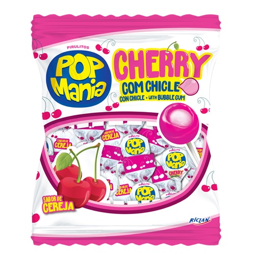Pirulito Pop Mania Com Recheio Chiclete Cherry (Cereja) 500gr