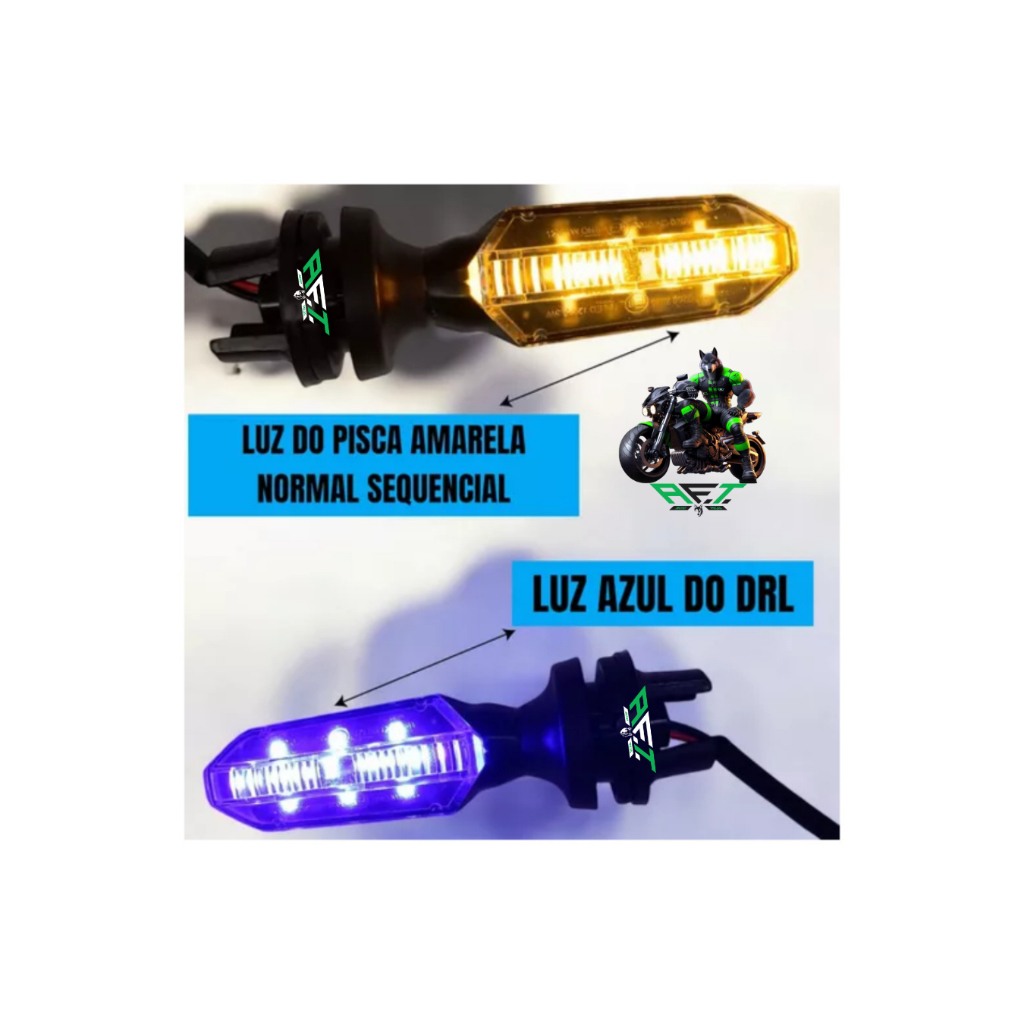 PISCA DE LED DRL TWISTER CB 250F SEQUENCIAL COXIM AZUL COM AMARELO. ( CONTEM 2 UNIDADES, OU SEJA 1 PAR) * ESPECIFICAÇÕES TÉCNICAS: - Modelo: Pisca LED com coxim - Tipo de Lâmpada: LED - LUZES AZUL AO LIGAR O VEICULO - SETA AMARELA AO ACIONAR O PISCA * COMPATIBILIDADE: - CB 250 TWISTER (2019 em diante) - CG TITAN (2014 em diante) - FAN (2014 em diante) - CARGO (2014 em diante) - START 125/160 (2014 em diante) ESTE MODELO DE PISCA É COMPÁTIVEL APENAS COM MOTOS QUE POSSUEM ENCAIXE COXIM; NÃO SERVE EM MOTOS QUE A INSTALAÇÃO É PARAFUSO - PARA UTILIZAR AS SETAS SEM PRECISAR CORTAR O CHICOTE DA MOTO, SERÁ PRECISO O USO DE UM ADAPTADOR COM PLUG PARA A SETA DA TWISTER NA CG 160 A INSTALAÇÃO DO PRODUTO É SIMPLES, PORÉM PARA EVITAR PROBLEMAS RECOMENDAMOS QUE A INSTALAÇÃO SEJA FEITA POR UM PROFISSIONAL DA ÁREA. Nós NÃO nos responsabilizamos pelo mau uso do produto. Esperamos que esta compra possa atender às suas expectativas. Gostaríamos que você avalia-se o produto como uma classificação de CINCO ESTRELAS. Esperamos que retorne em breve! Se você tiver alguma dúvida, temos uma equipe pronta para atender e sanar todas elas.