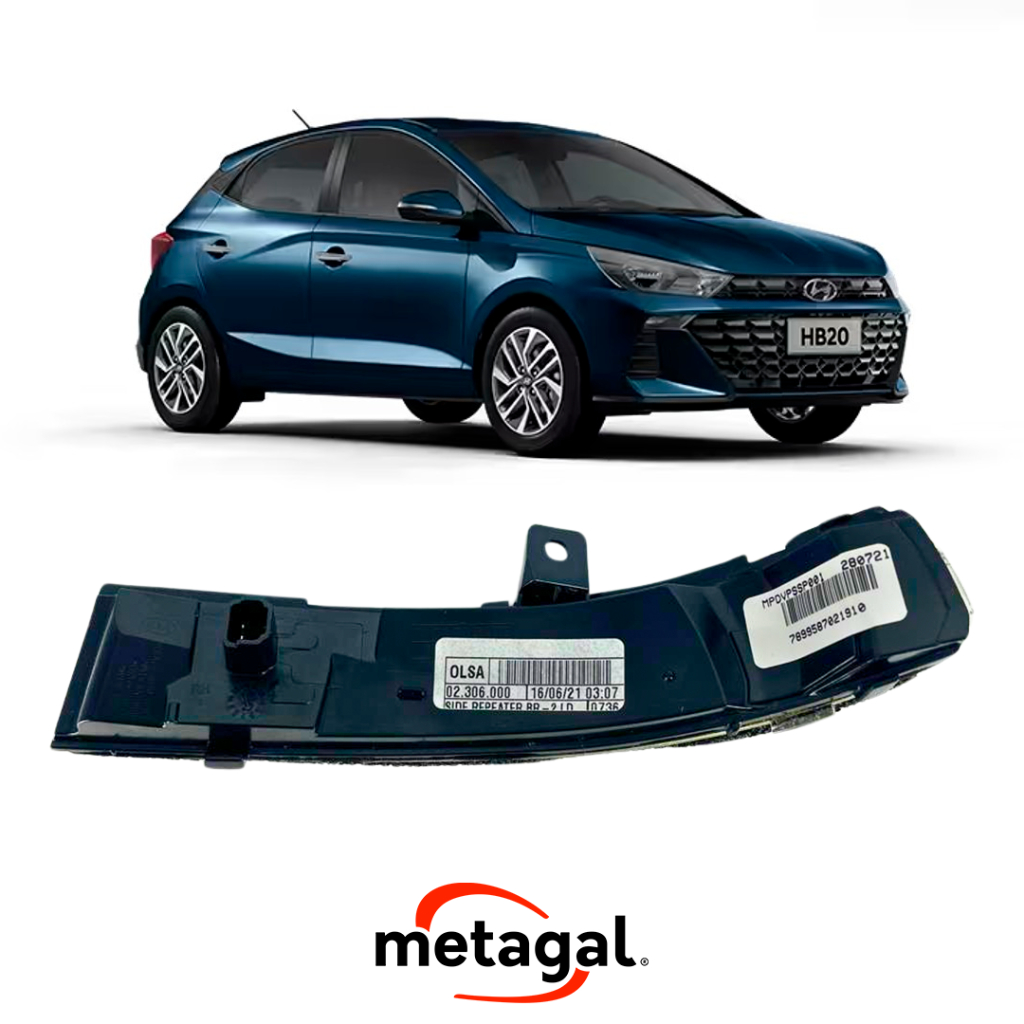 Pisca do Retrovisor Hyundai HB20 2020/2022 ORIGINAL Os Piscas de Retrovisores são fabricados com a mais alta tecnologia oferecida no mercado de reposição de peças automotivas. Com o material de produção extremamente resistente e alinhamento perfeito, a peça nova do carro é um item indispensável para manter o design e originalidade e segurança do seu veículo. Troque agora seu pisca danificado. Especificações Técnicas: - Pisca de Retrovisor - Encaixe Perfeito e Fácil Instalação - Ideal para Reposição - Excelente Acabamento - Feito Sob Medida - Produto Original METAGAL Aplicações: Hyundai - Hb20 2020 - Hb20 2021 - Hb20 2022 IMPORTANTE: - Valor Referente a unidade; - Não nos responsabilizamos por instalação mal realizada, a instalação deve ser feita por um profissional especializado. GARANTIA NÃO SE APLICA NOS CASOS DE: - Produtos danificados na montagem ou impropriamente instalados. - Partes ou peças que tenham sido modificadas ou alteradas em relação à sua configuração original. - Peças estragadas devido à modificações no veículo ou por acidente. - Instalação incorreta ou utilização de ferramental inadequado. - Avaria ou desgaste ocasionado por mau uso. Nossa equipe de atendimento está sempre pronta para esclarecer suas dúvidas, fornecer informações sobre os nossos produtos e auxiliar em todo o processo de compra. Não hesite em nos contatar, estamos à sua disposição.
