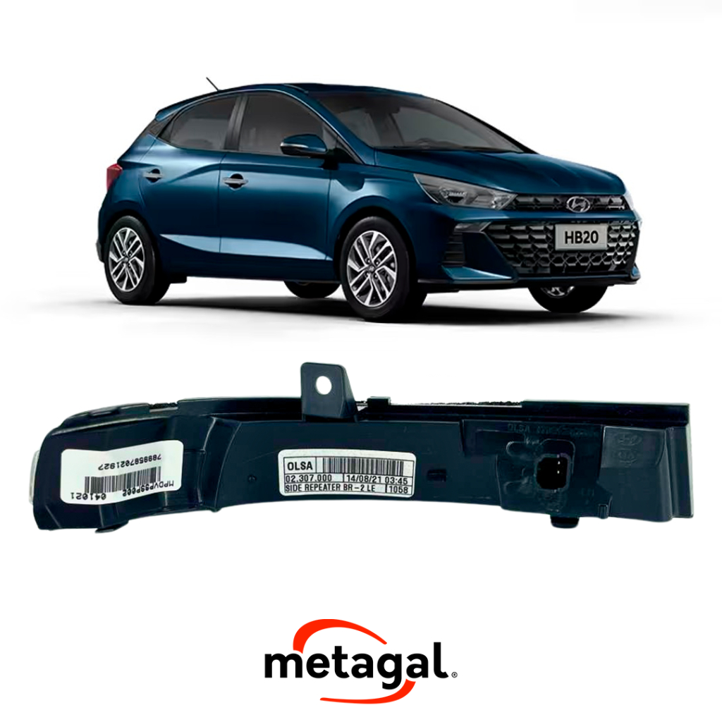 PISCA RETROVISOR ESQUERDO HYUNDAI HB20 2020/2022 Os Piscas de Retrovisores são fabricados com a mais alta tecnologia oferecida no mercado de reposição de peças automotivas. Com o material de produção extremamente resistente e alinhamento perfeito, a peça nova do carro é um item indispensável para manter o design e originalidade e segurança do seu veículo. Troque agora seu pisca danificado. Especificações Técnicas: - Pisca de Retrovisor - Encaixe Perfeito e Fácil Instalação - Ideal para Reposição - Excelente Acabamento - Feito Sob Medida - Produto Original METAGAL Aplicações: Hyundai - Hb20 2020 - Hb20 2021 - Hb20 2022 IMPORTANTE: - Valor Referente a unidade; - Não nos responsabilizamos por instalação mal realizada, a instalação deve ser feita por um profissional especializado. GARANTIA NÃO SE APLICA NOS CASOS DE: - Produtos danificados na montagem ou impropriamente instalados. - Partes ou peças que tenham sido modificadas ou alteradas em relação à sua configuração original. - Peças estragadas devido à modificações no veículo ou por acidente. - Instalação incorreta ou utilização de ferramental inadequado. - Avaria ou desgaste ocasionado por mau uso. Nossa equipe de atendimento está sempre pronta para esclarecer suas dúvidas, fornecer informações sobre os nossos produtos e auxiliar em todo o processo de compra. Não hesite em nos contatar, estamos à sua disposição.