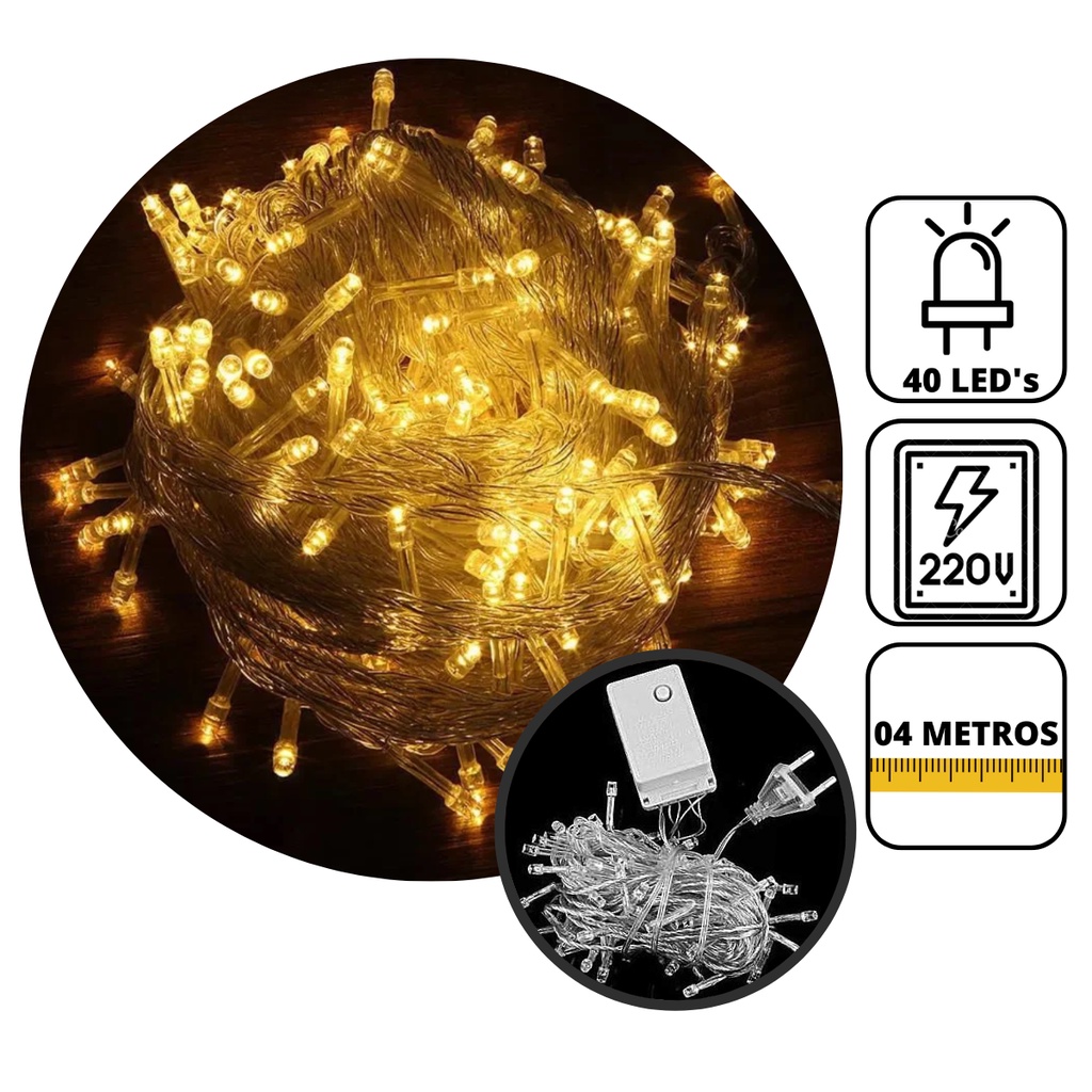 Pisca pisca de Natal Branco Quente 40 Led's 4 Metros 220V - WINCY NATAL