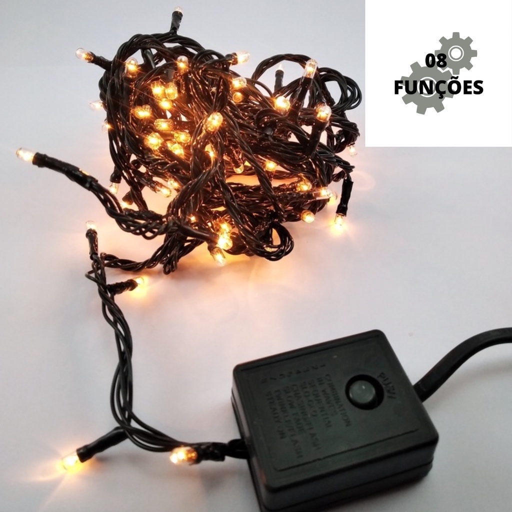 Pisca Pisca de Natal Cordão com 100 lâmpadas 4,15 m e 8 Funções - Branco