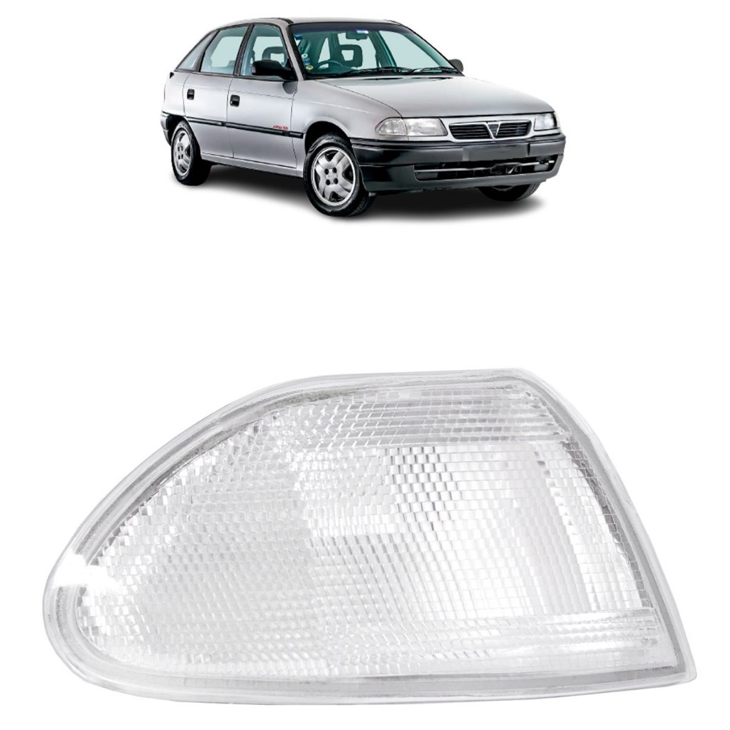 Pisca Seta Dianteira Chevrolet Astra 1993 1994 1995 1996 Cristal Características: Produto novo de ótima qualidade; Feito sob medida, encaixe perfeito; Não acompanha lâmpadas e soquetes. Especificações técnicas: Cor: cristal; Lente estriada em acrílico resistente. Compatível com os modelos: Astra 1993 a 1996. Código original: 90510959 90510958 Garantia: 90 dias. Dica: De um novo visual para o seu carro, aqui você encontra os melhores produtos com os melhores preços. Importante: NÃO nos responsabilizamos pela má instalação ou mau uso do produto, para evitar transtornos procure por um profissional especializado.
