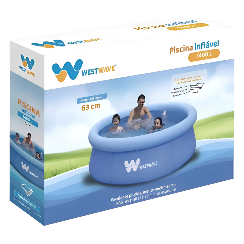Piscina Inflável 1400L West Wave. Procurando alternativas para se divertir no verão? Adquira já a Piscina Inflável De 1.400 Litros de capacidade. A solução perfeita para fugir do calor e garantir a diversão das crianças e adultos! As piscinas da West Wave são práticas, de fácil montagem e atendem todas as suas expectativas para o verão. São fabricadas em material resistente, de ótima qualidade e durabilidade, além de fácil montagem. Se está procurando uma dica para o lazer da família, são perfeitas para o quintal, varanda ou até para a laje da sua casa. O revestimento é suportado pelo anel inflável responsável por dar forma ao revestimento quando a piscina começa a ser abastecida com água. Para uma maior vida longa evite instalar a piscina em locais com piso irregular e com pedras ou diretamente sobre concreto, asfalto ou superfícies duras. Características: - Medidas: 1,83m de comprimento x 63cm de altura - Capacidade de água (80%): 1.400 Litros - Montagem fácil: selecione uma superfície nivelada, infle o anel superior e a piscina aumentará à medida que for enchida com água até a altura indicada no manual. - Composição da piscina: Paredes laterais de PVC e poliéster de 3 camadas resistentes: as paredes laterais extra fortes são feitas com 3 camadas separadas de material. A camada interna de malha de poliéster é laminada para as 2 camadas externas de PVC de calibre pesado. Conteúdo da Embalagem: - 1 Piscina 1.400 Litros