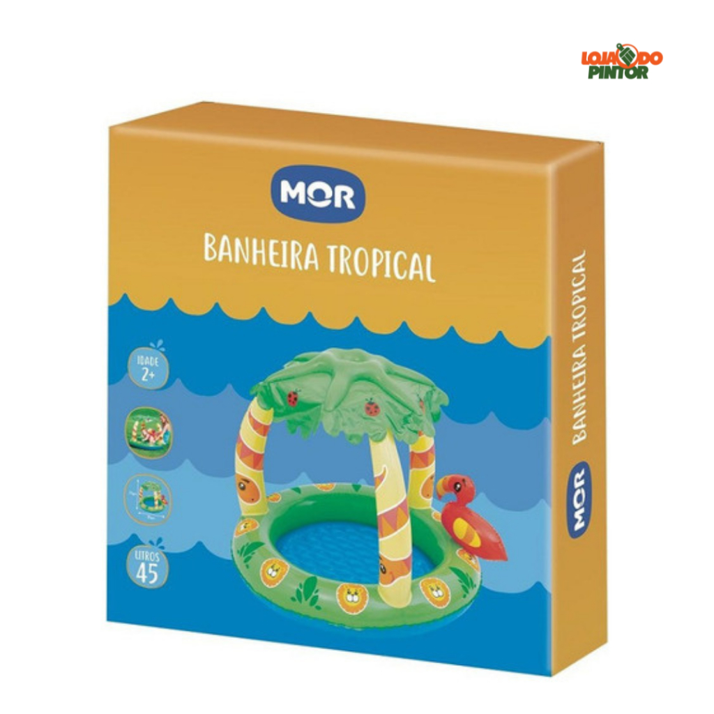 Descrição A colorida e estampada Banheira Tropical traz um lindo Para-Sol em formato de coqueiro que vai proteger os pequenos dos raios nocivos do sol, além de contar com um brinquedo inflável o flamingo. Perfeita para refrescar nos dias de calor, a Banheira foi confeccionada em vinil resistente com estampa em tinta atóxica e possui fundo inflável para maior conforto dos pequenos. Com capacidade para até 45 litros, possui 5 câmaras de ar independentes e adesivo para reparo, além de bonita embalagem, pronta para presentear. A Banheira Tropical é recomendada para crianças acima de 2 anos de idade. É a Mor garantindo diversão por horas!Atenção! Nunca deixe crianças sozinhas perto da água sem supervisão de um adulto. Especificações MATERIAL PVC TAMANHO Entre 90cm e 1m CAPACIDADE 45 litros OBSERVAÇÕES Os objetos que ambientam as imagens não acompanham o produto! GARANTIA 90 Dias ALTURA 71,00 Centímetros LARGURA 91,00 Centímetros COMPRIMENTO 99,00 Centímetros PESO 1,02 Kilogramas