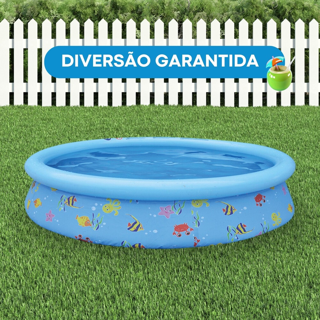 Piscina Infantil 1.000 Litros Redonda Inflável PVC Estampa Divertida + Bomba de Ar Piscina infantil grande tamanho 1,68 M x 51 cm