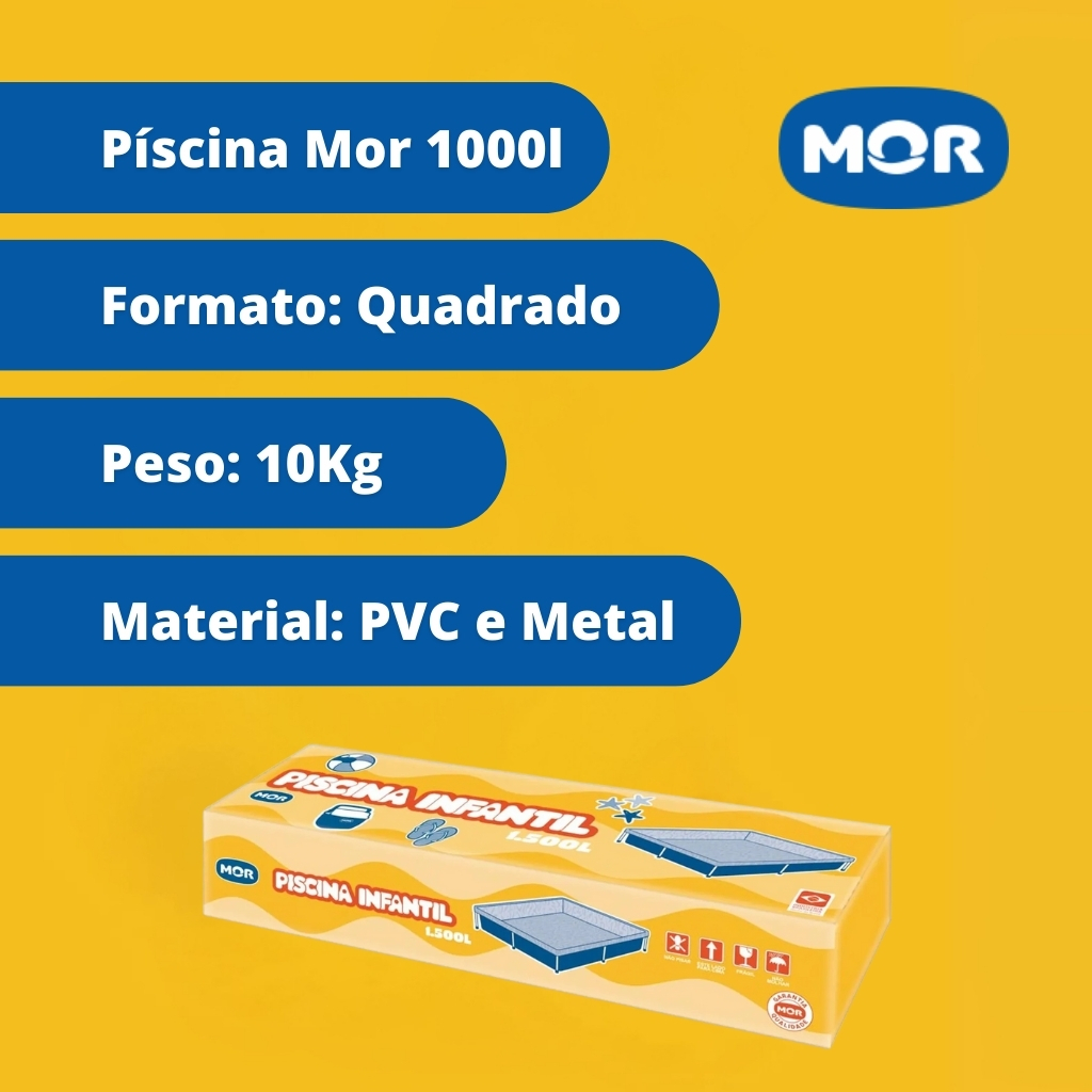 Piscina 2000 Litros Estruturada Standard Mor Com a Piscina Standard 2.000 litros Mor ficará fácil driblar o calor! Se brincar já é bom, imagine só com muita água no meio da diversão? Com estrutura firme, é perfeita para passar o tempo com a meninada e por ser simples de montar, em poucos instantes a folia estará garantida! Em aço carbono, a estrutura da Piscina possui pintura em epóxi e cada bastão possui acabamento emborrachado no pé, Possui válvula de deságue para facilitar a limpeza e possui tripla camada (duas lâminas de PVC com uma trama de poliéster entre elas) que garante a resistência do produto. Atenção! Nunca deixe crianças sozinhas perto da água sem supervisão de um adulto. Marca: Mor Material: PVC Formato: Quadrada Cor: Azul Capacidade: 2.000 Litros Medida da piscina com escoras: 1,89m x 1,89m x 58cm