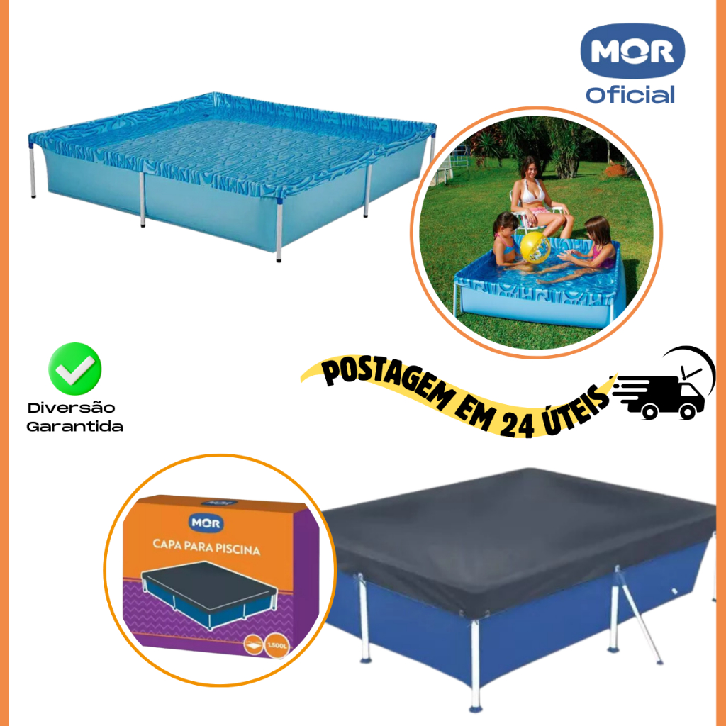 PISCINA RETANGULAR 1500 LITROS + CAPA PROTETORA - MOR PRODUTO ORIGINAL E A PRONTA ENTREGA Para a garotada, os dias de sol são perfeitos para brincar! Pensando nisso, a Mor desenvolveu a Piscina Infantil 1.500 litros com o intuito de agregar ainda mais diversão na estação mais gostosa do ano. Produzida em lona PVC resistente 100% impermeável e estrutura com tubos de aço, qualquer adulto vai montar a piscina com muita facilidade. Depois de desmontada, ocupa pouco espaço, podendo ser levada para as férias na praia ou no campo. O acabamento em epóxi prolonga a vida útil da Piscina, pois evita que as bases de aço enferrujem, um detalhe que proporcionará ainda mais proteção aos momentos de diversão da criançada! Atenção! Nunca deixe crianças sozinhas perto da água sem supervisão de um adulto. CARACTERÍSTICA DO PRODUTO: Material: PVC Formato: QUADRADO Cor: Azul Capacidade: 1.500 Litros DIMENSÕES DO PRODUTO: Altura: 42,00 Cm Largura: 1,89 M Comprimento: 1,89 M Peso: 6,93 Kg DESCRIÇÃO DA CAPA: Mantenha sua piscina sempre limpa com a Capa Piscina Infantil! Ela é perfeita para proteger contra insetos parasitas, água da chuva, folhas e sujeiras em geral, conservando a água da piscina própria para banho por muito mais tempo, ajudando assim o meio ambiente. Produzida em PVC, a Capa possui cordas em poliéster para serem fixadas na estrutura da Piscina Infantil de 1.500 litros. Lembrando que, além da Capa, é indispensável fazer o tratamento químico recomendado para a capacidade de água da sua piscina de acordo com seu Manual! CARACTERÍSTICA DO PRODUTO: Material: PVC Formato: QUADRADO Cor: Azul Capacidade: 1.500 Litros DIMENSÕES DO PRODUTO: Altura: 0,01 Cm Largura: 2,19 M Comprimento: 2,19 M Peso: 1,04 Kg MOR: A MOR nasceu no município de Santa Cruz do Sul, começando como uma empresa familiar. Inicialmente fabricávam produtos para apicultura, em uma pequena metalúrgica no início dos anos 60. Hoje, com mais de 50 anos de história a empresa cresceu e se firmou no mercado de produtos para casa, camping e lazer.