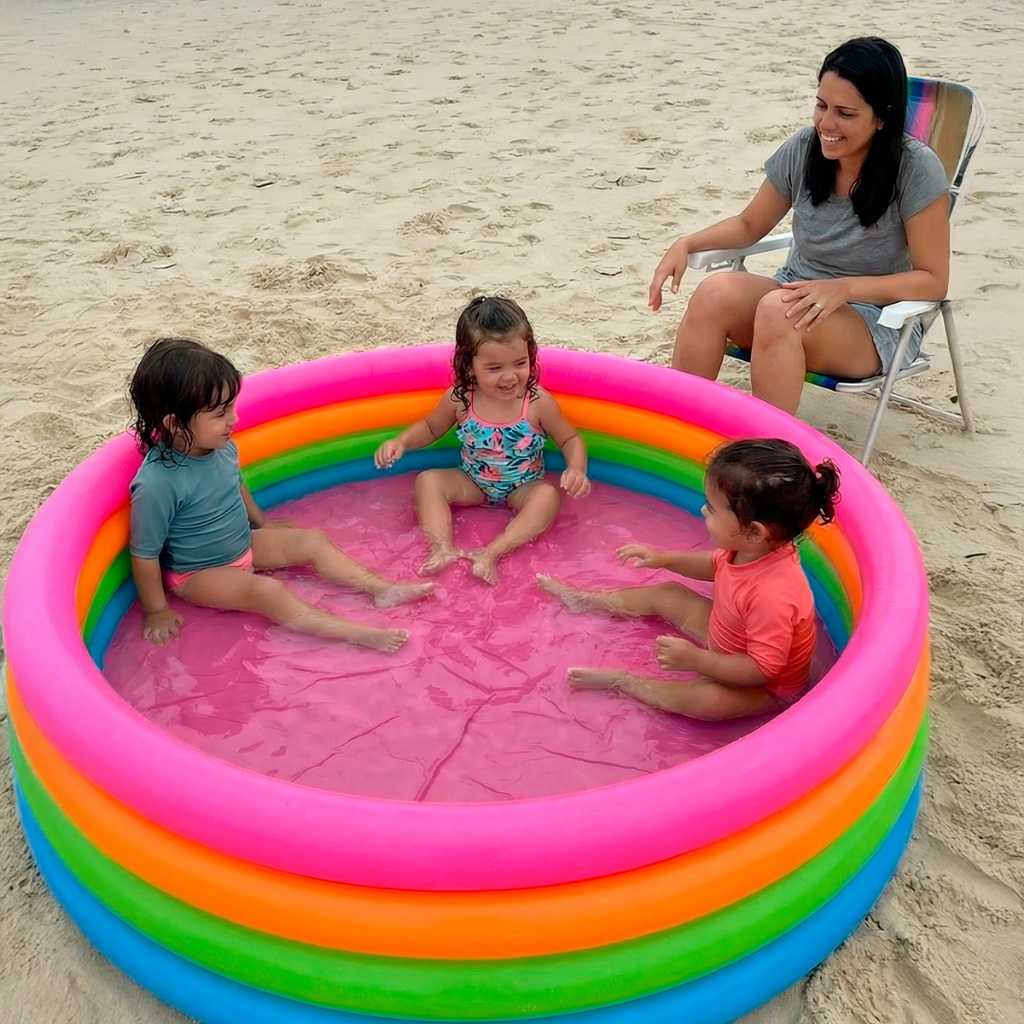 Seja no calor do verão ou na hora do banho, a nossa Piscina Infantil Colorida é a escolha perfeita para garantir a diversão e a segurança dos pequenos. Com um design vibrante e compacto, ela se adapta a qualquer espaço, dentro ou fora de casa. POR QUE ESCOLHER ESTA PISCINA? Multiuso: Perfeita para usar como piscina no jardim, banheira no chuveiro, ou até mesmo para brincar na areia da praia. Conforto Extra: Paredes e piso infláveis que garantem um toque suave na pele do bebê. Durabilidade: Fabricada em PVC de alta resistência, feita para durar muitos verões. Praticidade: Fácil de inflar, esvaziar e transportar para qualquer lugar. ESPECIFICAÇÕES TÉCNICAS: Capacidade: 600 Litros. Dimensões: 160cm (diâmetro) x 40cm (altura). Parede Inflável: 4 Anéis laterais coloridos. Material: PVC resistente. Indicado para: Áreas internas e externas (banheiro, pátio, gramado, praia). Conteúdo da Embalagem: 1 Piscina Inflável Colorida.