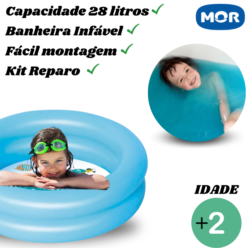 Piscina Inflável Infantil Banheira Água Bebê 28 Litros Mor