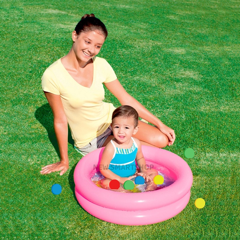 Piscina Inflável Infantil Redonda 60 Cm 21 Litros + 25 Bolinhas Coloridas Bebê Criança Rosa Azul Amarela Piscina Praia Jardim